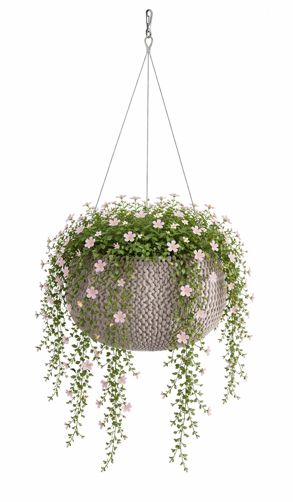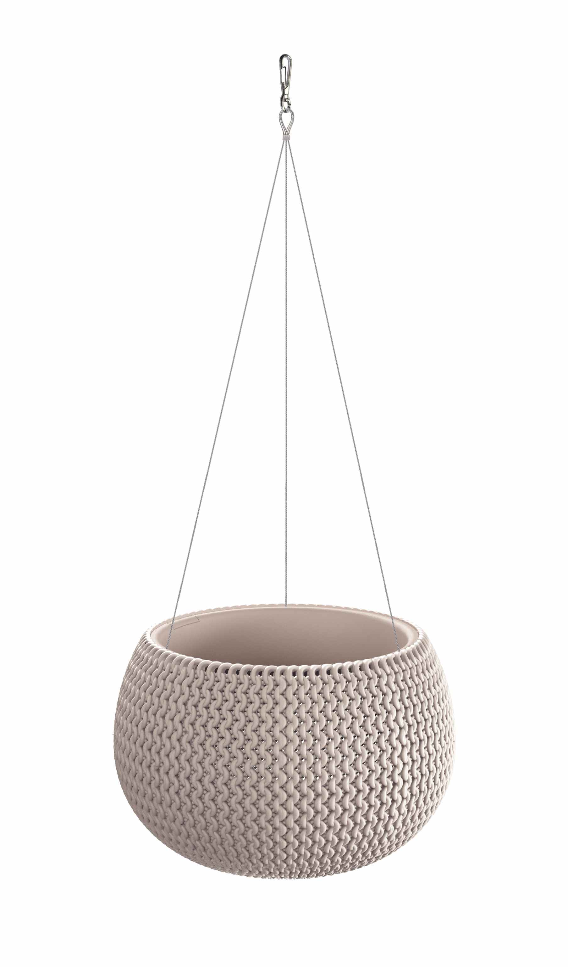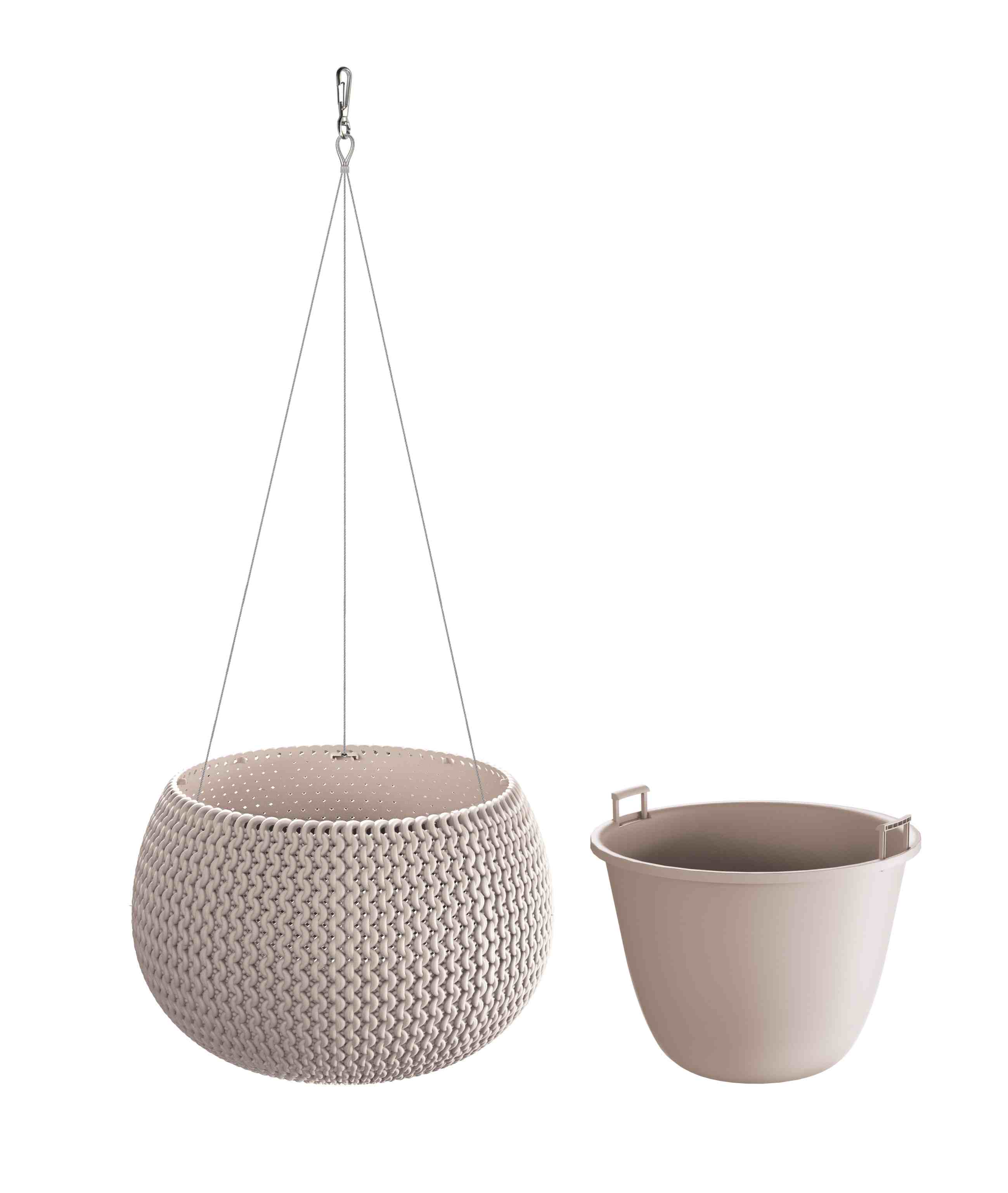 A felakasztható SPLOFY virágcserép enyhén lapított gömb alakjával és sűrűn szőtt fonalra emlékeztető textúrájával melegséget visz otthonába. A cserép színben hozzáillő ültetőbetéttel érkezik, amely megkönnyíti a növények gondozását.