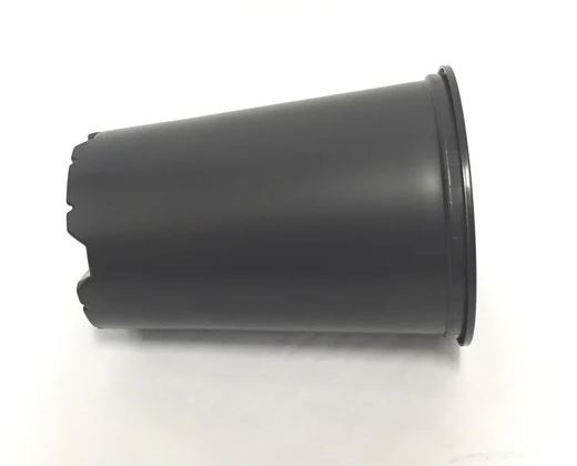 Masszív műanyagból készült magas virágcserép, amelyet rózsák termesztésére terveztek, az alján kialakított vízelvezető nyílásokkal a talaj optimális elvezetése érdekében.