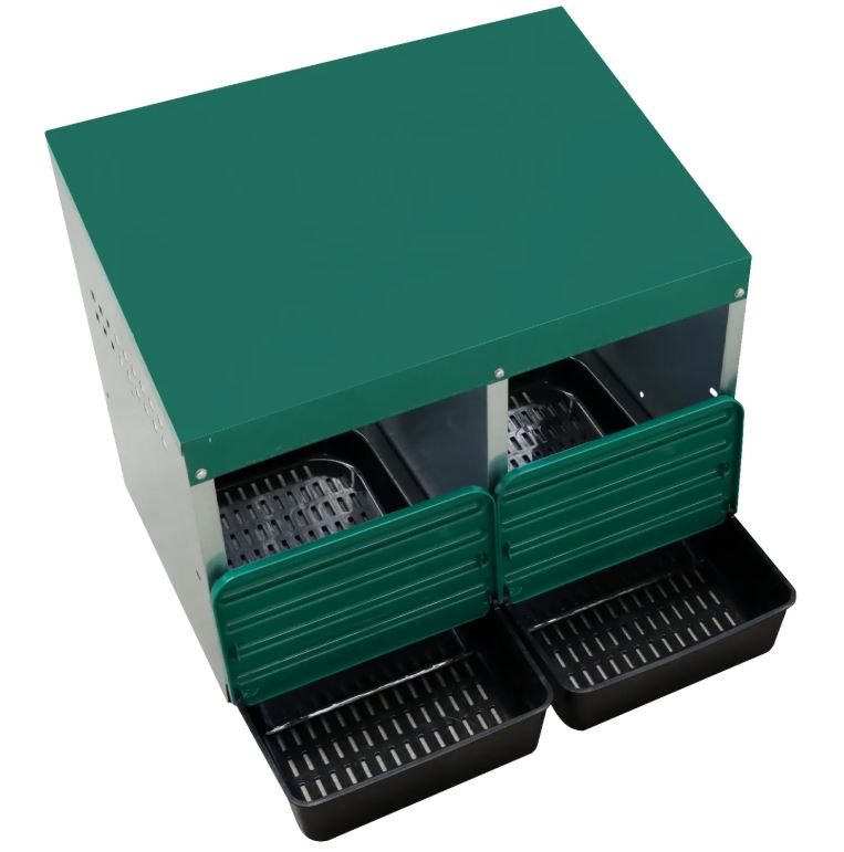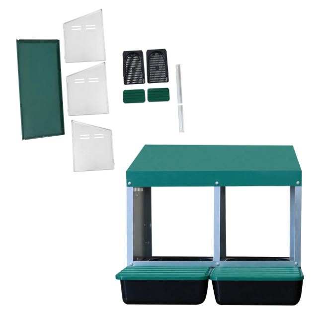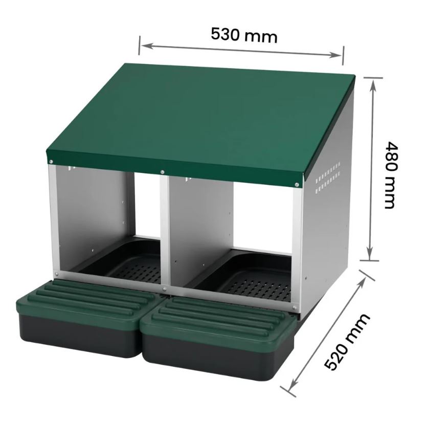 Ez a kétrekeszes tojófészek ideális választás azoknak a baromfitartóknak, akik rendet szeretnének tartani a tyúkólban, és megóvni a tojásokat a szennyeződéstől vagy sérüléstől.