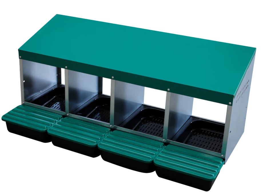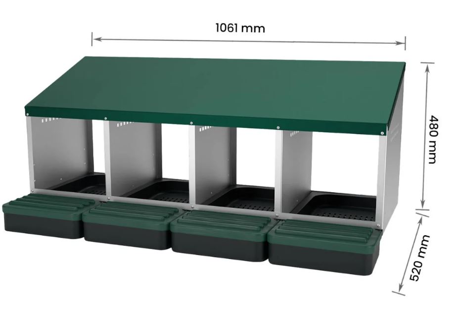 - KezdőlapTyúk- és baromfitartásTojásrakó fészekFém tojásrakó fészkekTojófészek 4 tyúk számára - fém