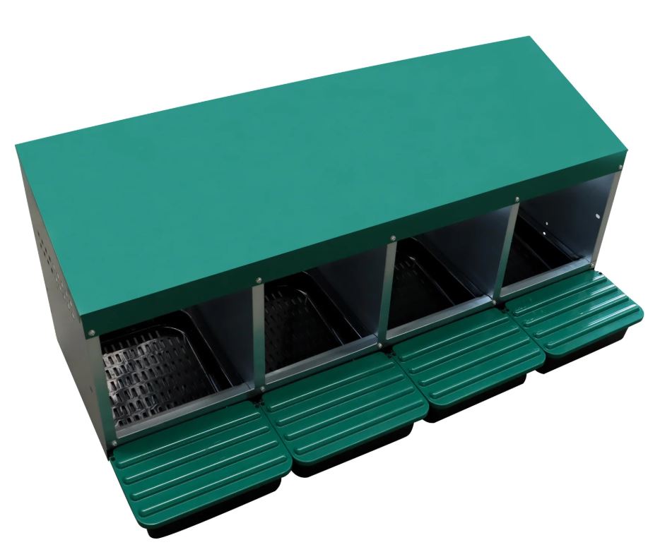 A fészek tojásgyűjtő kosárral van ellátva, 4 rekesszel, és legfeljebb 20 tojó számára alkalmas (rekeszenként 5 tyúk).