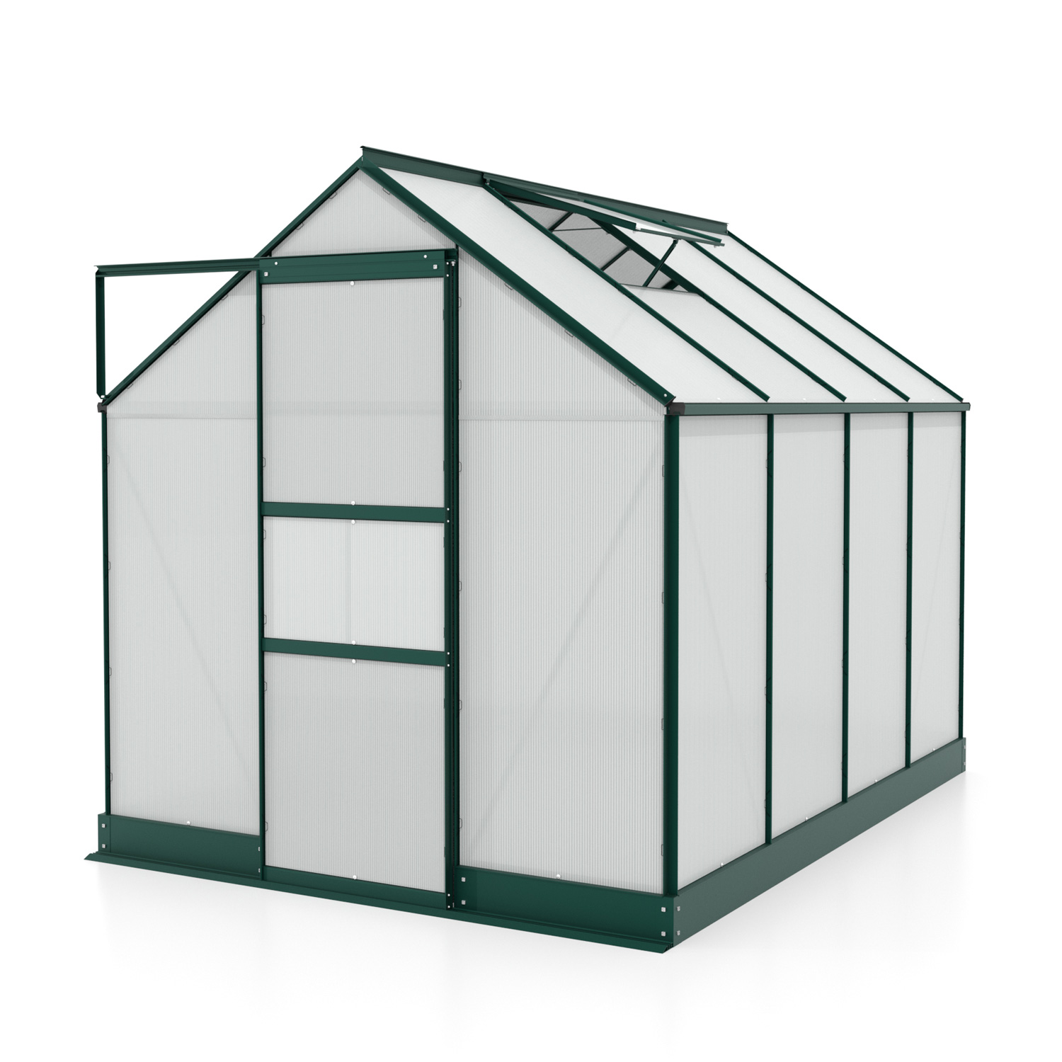 | A csomag tartalma | alumínium szerkezet, polikarbonát panelek, horganyzott acél alapkeret, 1× tetőszellőző ablak, ajtó, rögzítőelemek |